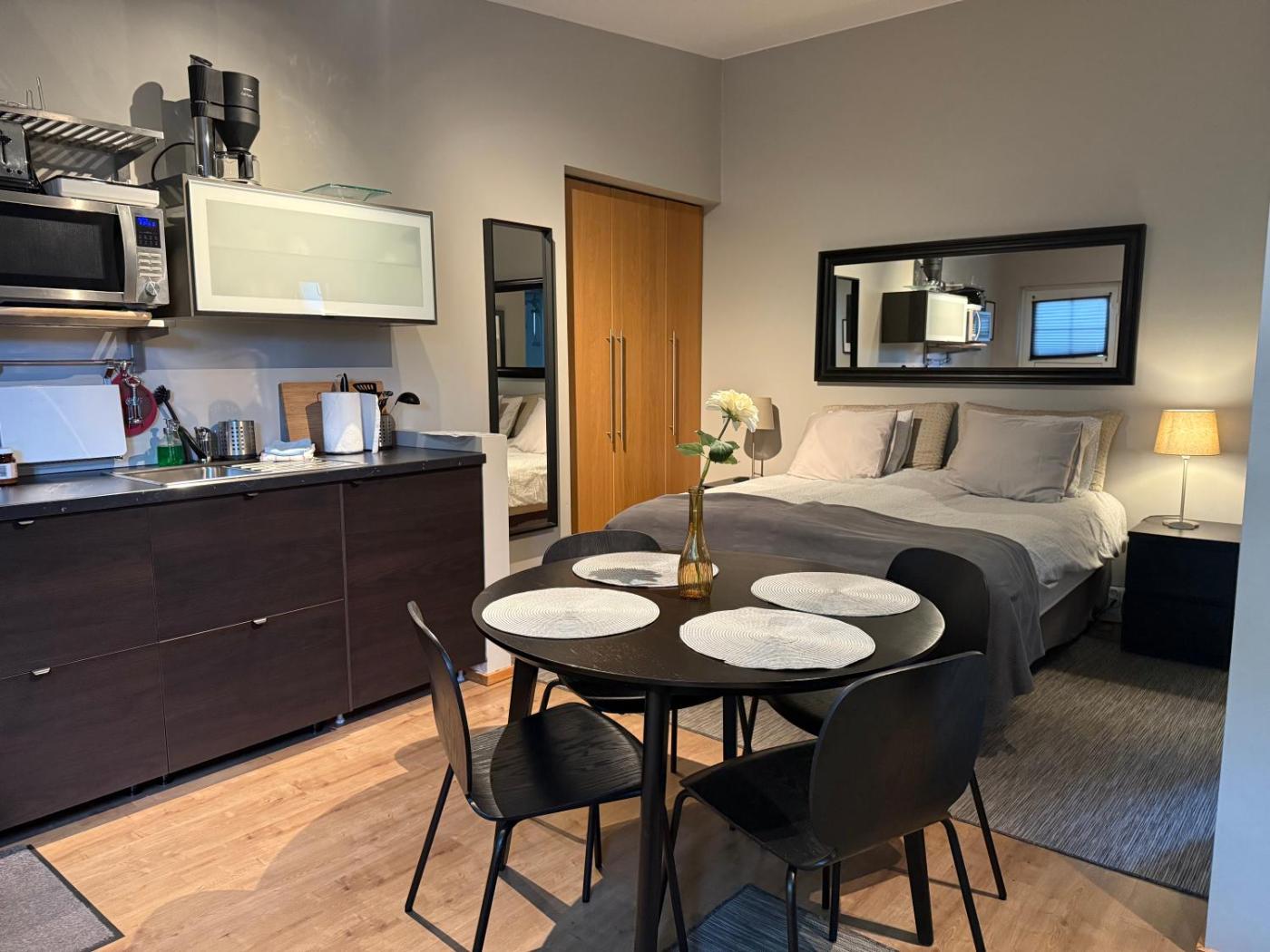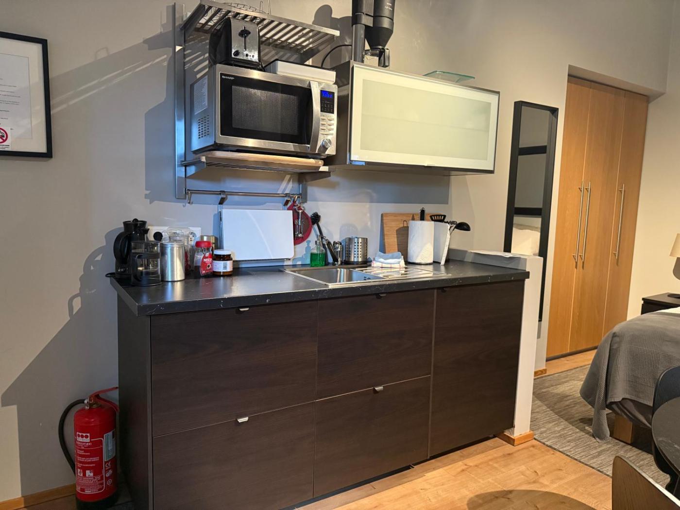 Studio Apartment. Offers a flat-screen TV, sofa and kitchenette with cooking hobs and dining area. There is no space for extra beds. ;