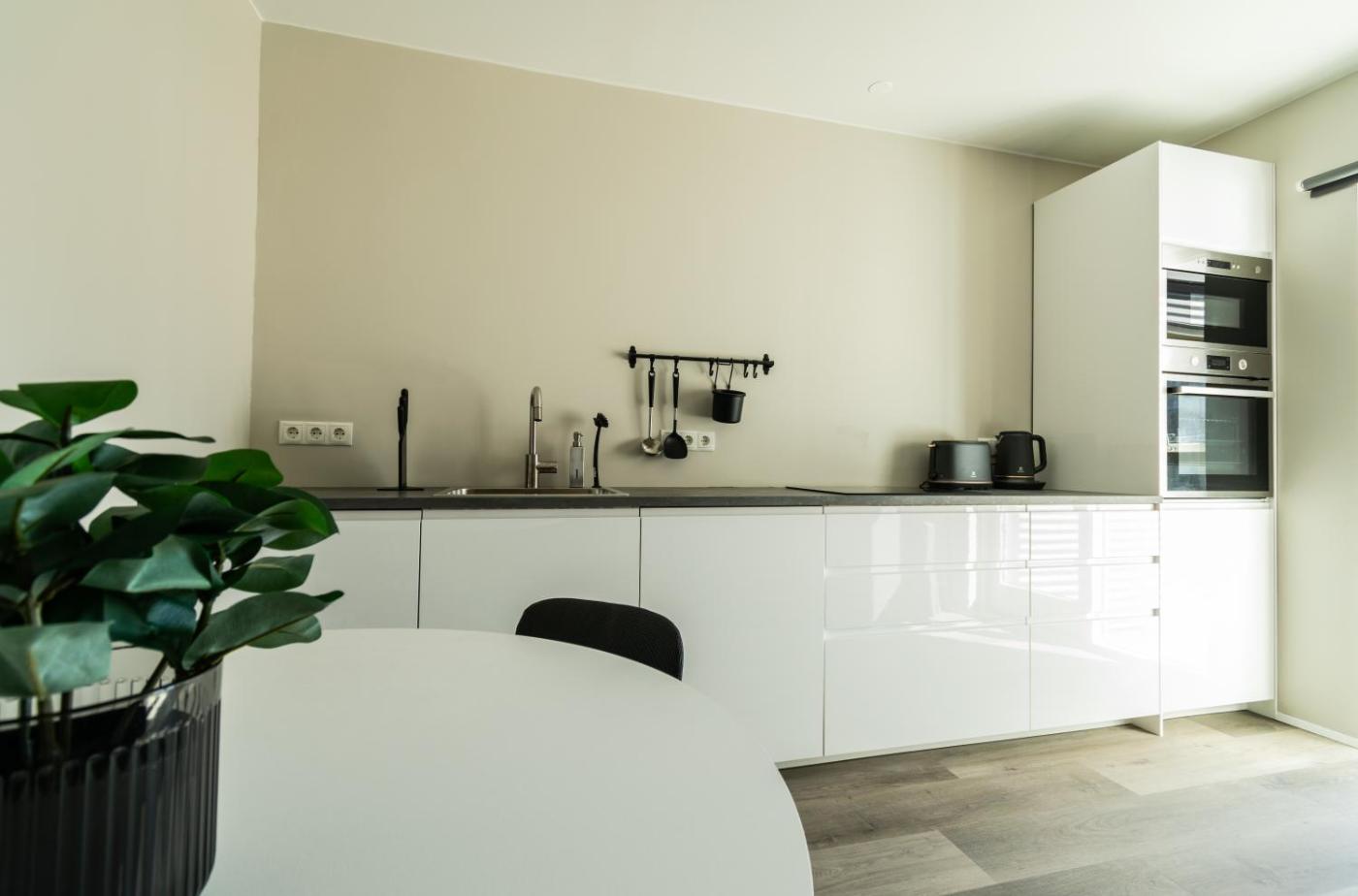 Studio. The studio features a private bathroom, a washing machine, a tea and coffee maker, as well as a seating area with a flat-screen TV. Meals can be prepared in the well-fitted kitchenette, which is fitted with a stovetop, a refrigerator, a dishwasher and kitchenware. The studio offers a sofa, parquet floors and heating. The unit offers 1 bed.