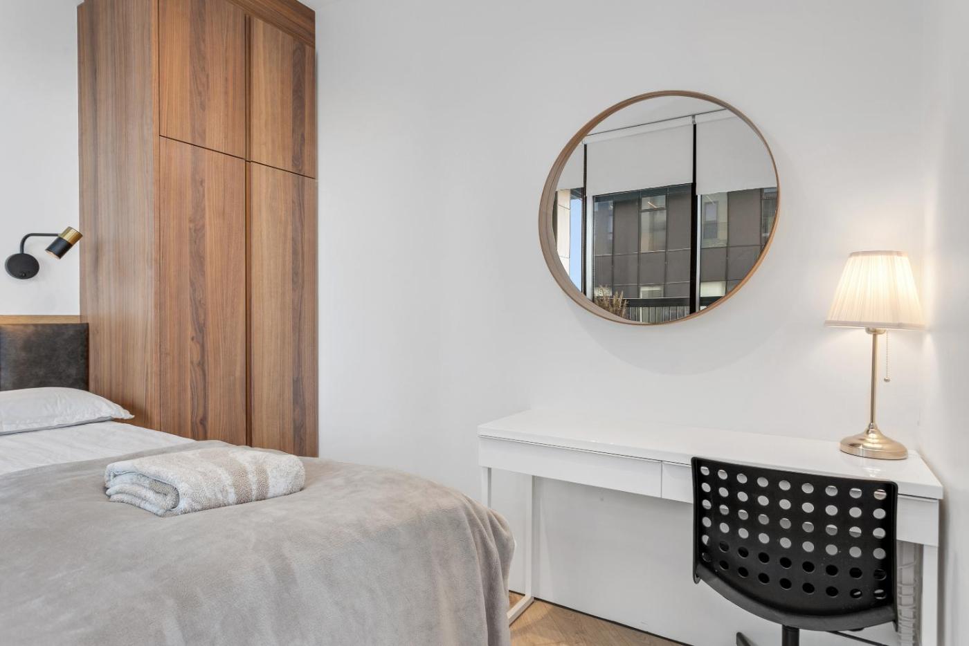 The spacious apartment is equipped with 1 bedroom, a flat-screen TV with streaming services and a fully equipped kitchen that provides guests with a dishwasher, an oven, a washing machine, a microwave and a toaster. Towels and bed linen are provided in the apartment. At the apartment, there is a dressing room for guests to change in.