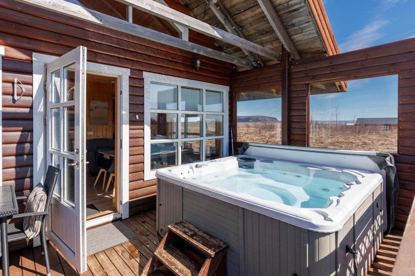 Two-Bedroom House. This holiday homes standout feature is the hot tub. This holiday home includes 1 living room, 2 separate bedrooms and 1 bathroom with a shower and free toiletries. Guests will find a stovetop, a refrigerator, a dishwasher and kitchenware in the well-fitted kitchen. The holiday home also features a barbecue. Boasting a terrace with garden views, this holiday home also offers a washing machine and a flat-screen TV with streaming services. The unit has 4 beds.