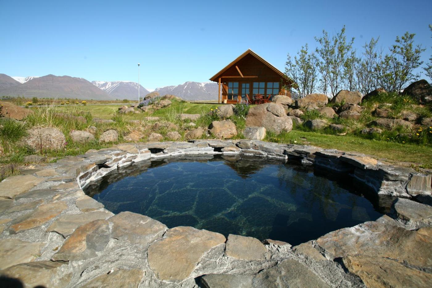 The communal, natural outdoor hot tub is ideal for an evening of relaxation. Icelandic horse riding tours and white water rafting trips can be arranged.